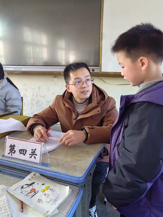 刘店小学在评估时以 “趣味闯关” 为核心形式,将语文、数学的学科知识融入生动有趣的游戏任务中,让孩子们在轻松愉悦的氛围中展现自我、收获成长,赢得了师生与家长的一致好评。并摒弃了 “一考定优劣” 的传统模式,采用 “过程性评价 + 个性化反馈” 的方式。每位闯关成功的孩子都会获得一枚定制的 “素养之星” 贴纸,累计贴纸可兑换专属小奖品;评估教师则针对孩子们的表现,用鼓励性语言给予即时反馈,既肯定优点,也温柔指出可提升的方向。孩子们在闯关过程中热情高涨,有的专注思考、有的互帮互助、有的大胆尝试,脸上洋溢着自信与快乐的笑容,充分展现了低年级学生积极向上的精神风貌。