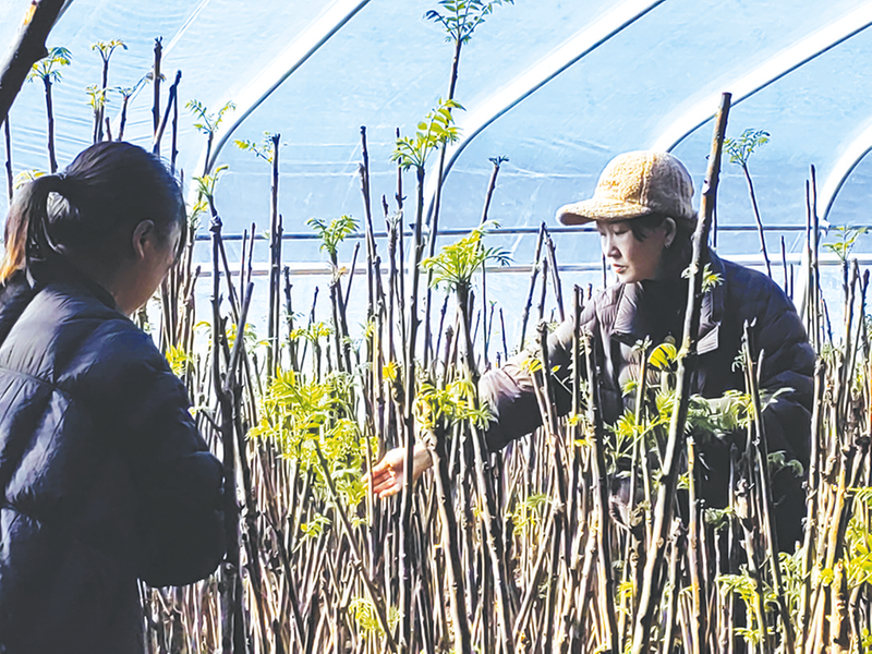 这股“椿”势不仅在玄龙庙村,更在周边村落蔓延开来。2025年4月,雄峰村从早禾公司采购了15亩地的香椿苗,尝试露天种植。“香椿对土壤环境要求不高,种植技术也简单,种一次能收益20年,一亩地能产700斤,预计3年后就能见收,亩均收益大概2000块。”雷波介绍,“露天种植的香椿市场行情稳定,适合规模化推广,为更多村庄提供了产业选择。”
