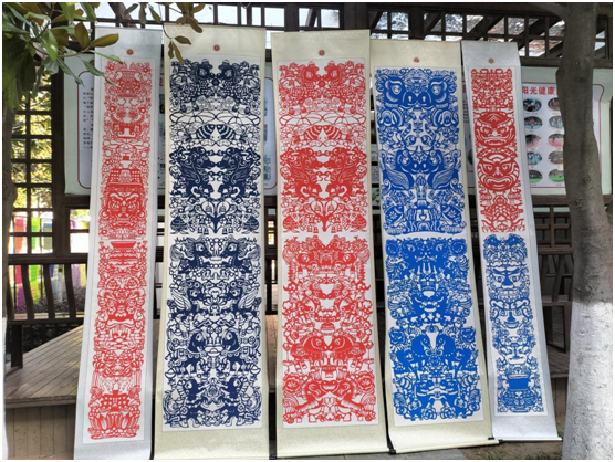 剪纸展区内,3.2米长卷《骐骥驰骋迎新年》以马年春晚吉祥物为主题,学生以剪纸形式呈现多组“萌马”形象,表达新年祝愿。《礼乐随州文明画卷》以随州青铜文化为核心,将非遗剪纸技艺与地方历史文化相融合,展现随州深厚底蕴。相关课程的开展有效提升了学生动手能力,增强了文化自信。