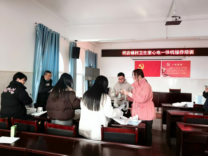 随州新闻网讯 (通讯员王静、张玲)为深入践行“白衣执甲党旗红,基层健康筑长城”的服务初心,持续夯实基层医疗服务网底,提升区域心电诊疗同质化水平,1月16日下午,何店镇中心卫生院党支部与曾都区人民医院党委深化协作,联合组织开展心电一体机专项操作培训活动。本次活动以党建为引领、技术为纽带、设备为支撑,扎实推进“心电一张网”建设,着力打通心血管疾病筛查管理“最后一公里”。