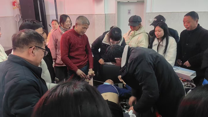 院内深耕,淬炼专业硬功。黄雷面向卫生院心超室医务人员,开展十二导联心电图机规范化操作与图谱分析专项培训。培训采取理论讲解、实操演示、互动答疑相结合的方式,助力医务人员强化复杂心电变化的识别与诊断能力,夯实专业基础。
