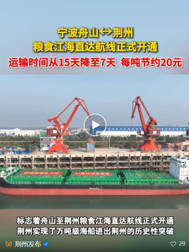 2025年2月,荆州跻身“港口型国家物流枢纽承载城市”,与武汉、宜昌并列成为湖北三大枢纽。
