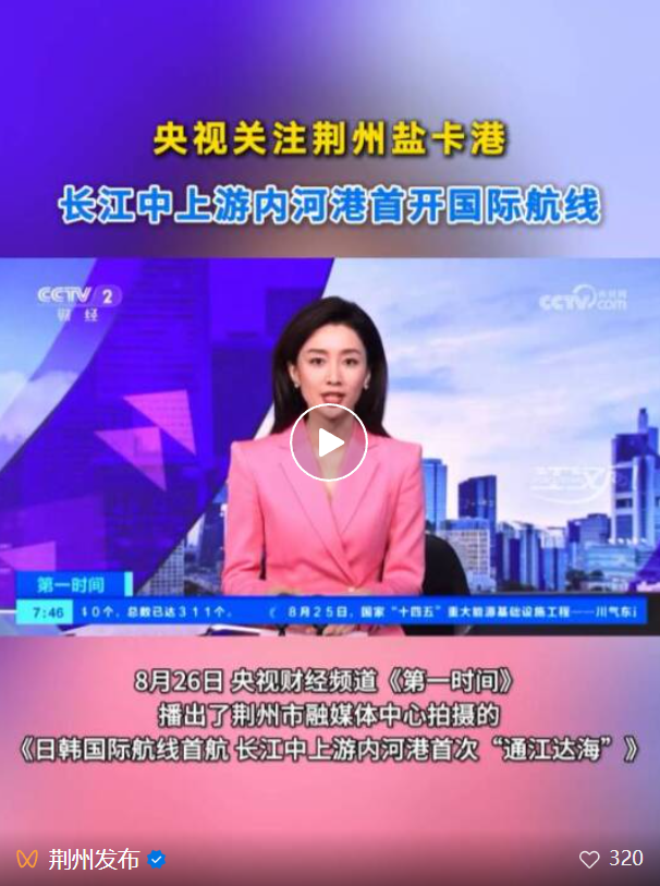 同年8月,荆州开通了直航日韩的国际航线,让万吨国际货轮历史性地驶入长江中上游,创造了长江内河港口通航的新历史,标志着荆州从“内河时代”向“通江达海”的新跨越。