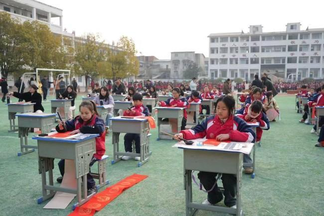 身着整齐冬季校服的学生们与教师们同台挥毫,笔锋流转间,一幅幅字迹工整、寓意吉祥的春联新鲜出炉。家长们在指定参观区有序观摩,沉浸式感受书法艺术的独特魅力。