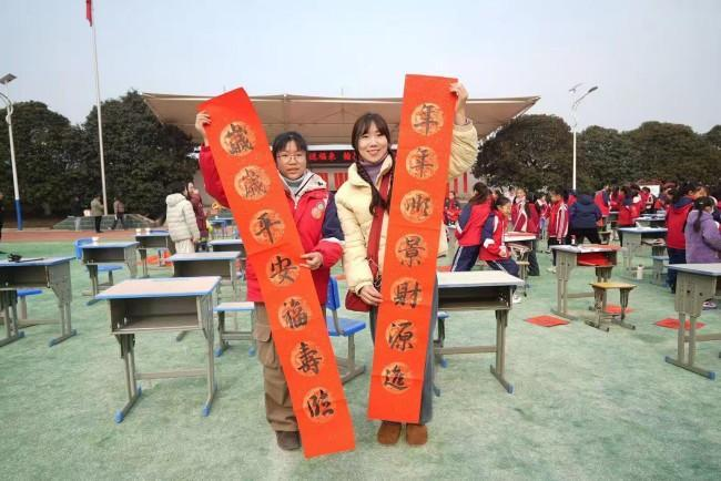 随州新闻网讯(通讯员程会娟、刘倩婷)1月16日,曾都区文峰塔小学教联体“骐骥驰骋送福来,翰墨飘香暖意浓”师生春联义写义送活动在何店小学正式启动。