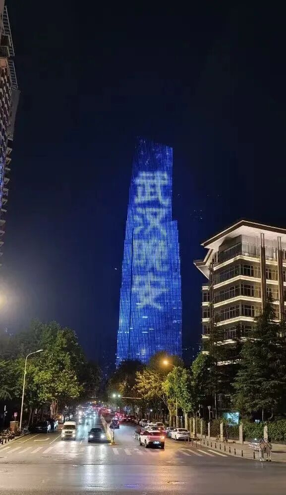 2025年8月6日晚,叶莲娜在汉口江滩一处拍摄的“武汉晚安”灯光秀。