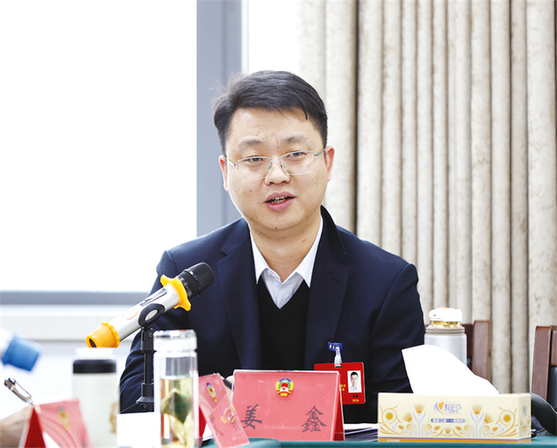 姜鑫委员建议,要继续优化人才引进政策,结合产业招商引才,推动随州经济高质量发展。图片为随州日报全媒记者徐斌摄