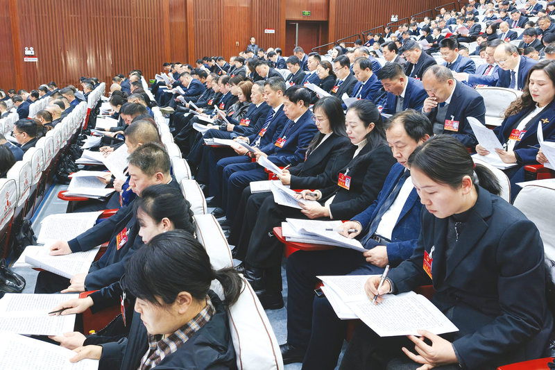 市五届人大六次会议上,人大代表、政协委员认真听取政府工作报告。(随州日报全媒记者李文军摄)