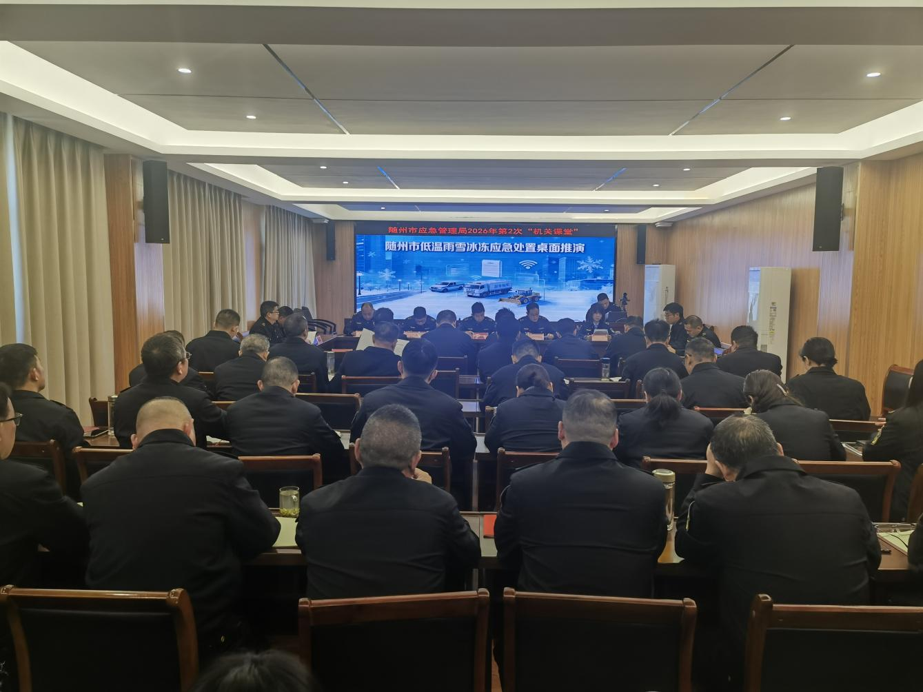 随州新闻网讯(全媒记者王璟天、通讯员曹庆山) 1月15日,市应急管理局以2026年第2次“机关课堂”为载体,组织开展全市低温雨雪冰冻灾害应急处置桌面推演,通过模拟实战场景全面检验应急指挥体系与多部门协同应对极端天气能力。