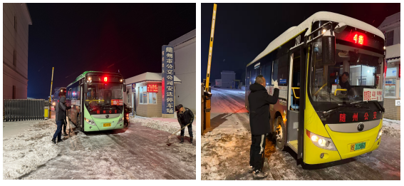 风雪无阻,初心不变。随州公交始终以市民出行需求为导向,全体职工上下一心、通力合作,在严寒中迎风斗雪,用行动诠释“公交为民”的初心。后续将持续紧盯天气变化,以更严标准、更实举措、更暖服务,全力为市民冬日出行保驾护航。