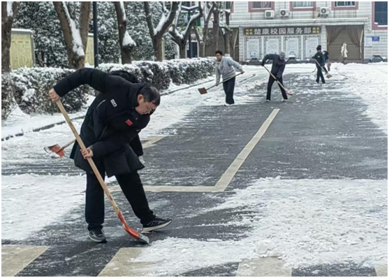 随州新闻网讯 (通讯员王伟、王晶晶)风雪骤至,一场瑞雪为学校披上银装,也给师生出行带来不便。为确保校园道路畅通,保障师生出行安全,1月20日上午,学校组织开展清雪除冰志愿服务活动。校党委书记陈峰、校长廖志娟带领由党员干部、体育教师及学生志愿者组成的服务队,对教学楼、宿舍区、食堂周边及主干道等重点区域进行了集中清理。