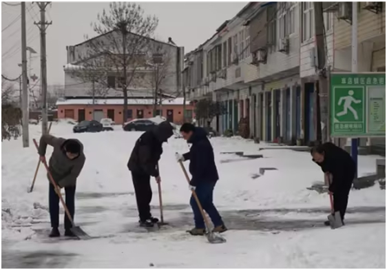 清晨,气温仍在冰点以下,志愿者们不畏严寒,手持铁锹、雪铲等工具,重点对校园出入口、主干道及周边通行路段开展除雪破冰作业。