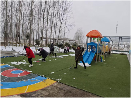——唐县镇中心幼儿园:全体教职工扫雪护园 静待宝贝归来