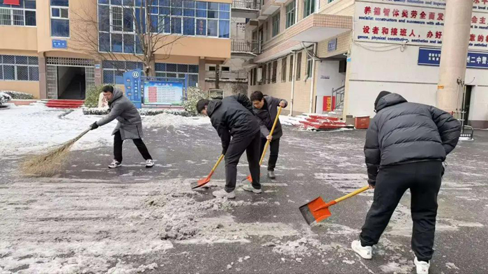 铁锹起落之间,积雪被一寸寸清除;反复踏查之中,暗冰被逐一排除。党员干部带头在最吃力、最关键的位置作业,教师们协同配合、分段推进。白雪之中,身影并不张扬,却格外坚定;寒风之下,行动并不喧哗,却格外有力。随着作业推进,一条条安全通道逐渐贯通,校园秩序在严寒中重新建立。