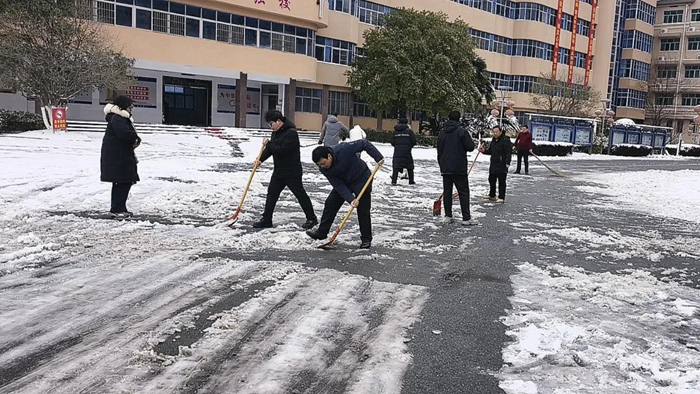 ——随州二中党员干部齐心铲雪守护校园平安