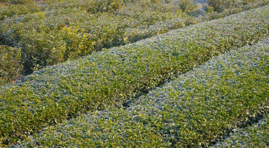 清晨,茶园基地霜露满园。新华社记者方亚东 摄