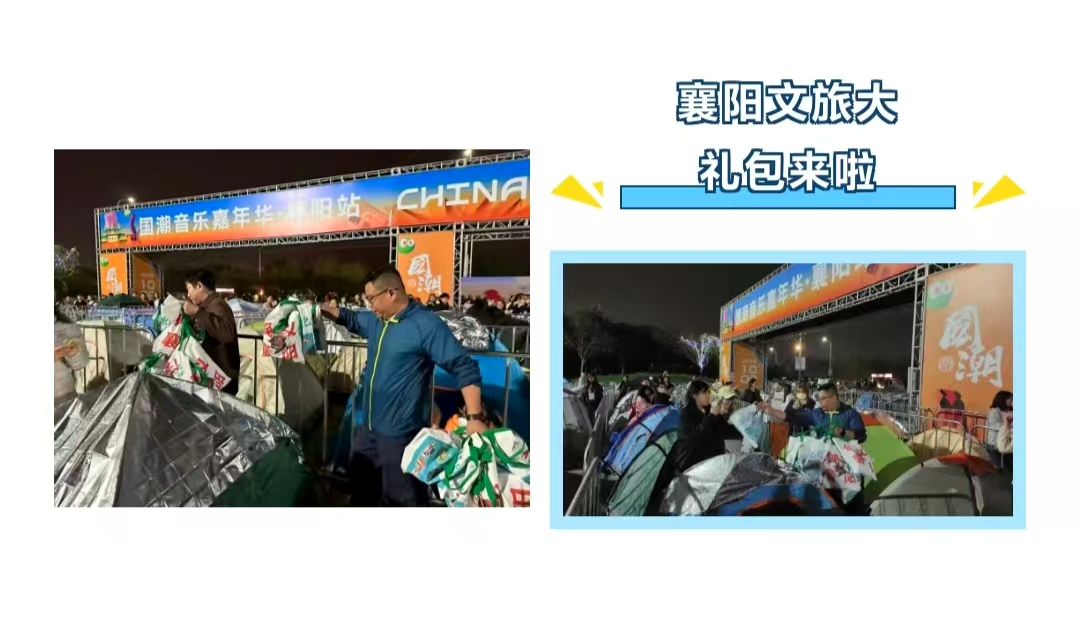 国潮音乐嘉年华襄阳站,从外地赶来的歌迷提前两天在候场区支起帐篷,想要第一时间参与这场音乐狂欢。襄阳公安24小时驻守在候场区,守护大家的平安。国潮音乐嘉年华襄阳站举办地樊城区,为提前候场的歌迷送上月饼及中秋祝福。襄阳市文化和旅游局为大家送上文旅大礼包。