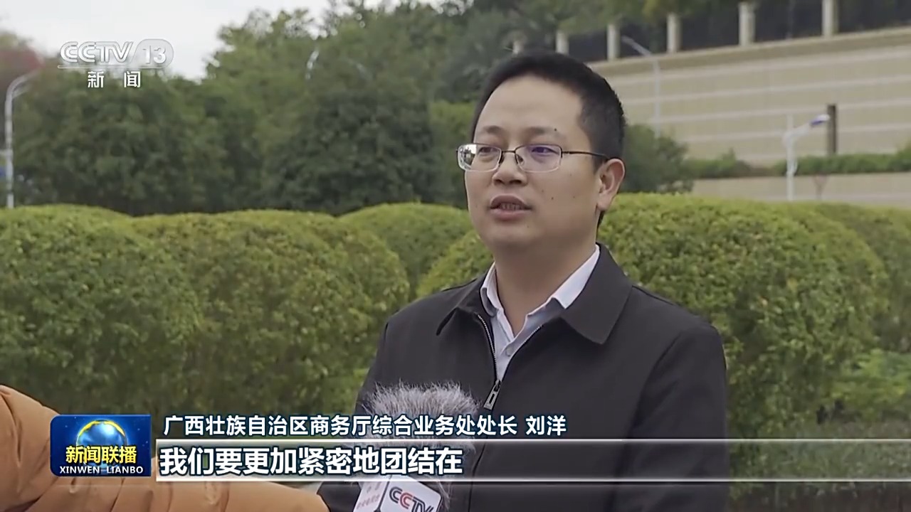广西壮族自治区商务厅综合业务处处长 刘洋:我们要更加紧密地团结在以习近平同志为核心的党中央周围,把党中央重大决策部署贯彻落实好,以做强国内大循环提升扩大高水平对外开放的自主性,以拓展国际循环增强国内改革发展的活力,服务好“购在中国”“出口中国”“投资中国”在广西落地见效,加快推动政策优势、资源优势、区位优势转化为现实竞争力。