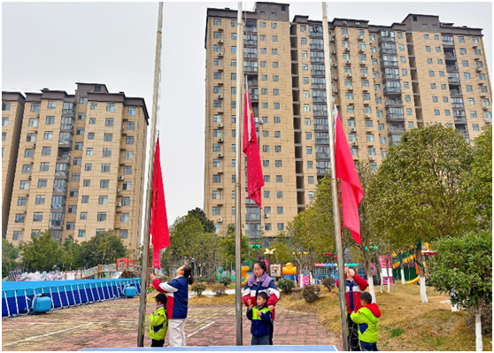 实施中注重仪式规范与情感体验:小旗手们经规范训练,流程严谨、神情庄重,营造出肃穆的沉浸氛围。这一过程不仅锻炼了幼儿的胆量与语言表达,更在其心中深植了礼仪规范、集体荣誉与国家认同。