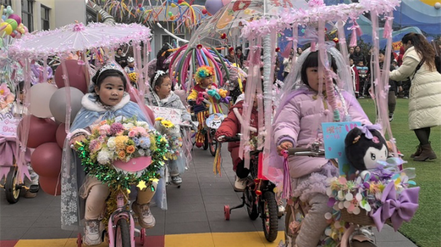 随州新闻网讯 (通讯员杨俊)1月28日上午,曾都区第二幼儿园的校园里,彩色气球随风轻舞,轻纱与彩绸交织成梦幻的帘幕,整个幼儿园化身为梦幻的童话世界,孩子们身着五彩斑斓的动画角色服装,与家长们一同开启了一场充满欢笑与温情的期末庆典。
