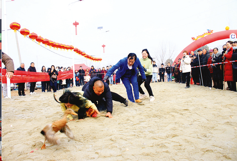 趣味互动,共讨彩头。文艺汇演落幕后,“抓鸡抓鸭”环节如期启幕,瞬间点燃全场。这一乡村特色游戏寓意“新年抓福”,承载着群众对新春的期盼。百余只土鸡、麻鸭在划定区域内灵动躲闪,裁判一声令下,选手们或精准出手、或奋力追赶,偶尔的“扑空”引得观众欢笑,成功抓捕时欢呼声此起彼伏。“今天太开心了,抓到2只土鸡,既锻炼了身体又讨了好彩头!”一位外地网友兴奋地说。据悉,活动共准备100只土鸡、麻鸭作为奖品,吸引全镇群众及全国各地网友参与,凝聚了节日向心力。