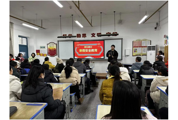 会前,学校统筹部署,教师精心打磨课件、梳理学生表现并布置教室,以温馨环境迎接家长。会上,学校向支持工作的家长致谢,班主任结合学生个性给出寒假规划建议,鼓励亲子共读、家务实践与传统习俗体验;各科教师全面反馈学生在校情况,分享科学育儿方法。同时,重点强调交通、消防、网络等多方面安全事项,提醒家长履行监护责任。会后,家长与老师围绕孩子成长问题深入交流,凝聚育人共识。