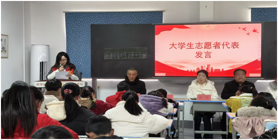 开班仪式上,两代教育者的同框格外动人,恰是 “桑梓情怀” 的最佳写照。一边是以全国优秀教师、“湖北好人” 王从伦为代表的 “银发智库”—— 数十载深耕乡村教育,他不仅是三尺讲台的泰斗,更是乡村孩子心中的 “精神灯塔”;另一边是以重庆大学学生齐楚珺为代表的大学生志愿者,作为王老师的学生,她们带着从家乡汲取的知识与活力 “归巢”,完成了一场跨越时空的 “爱心接力”。