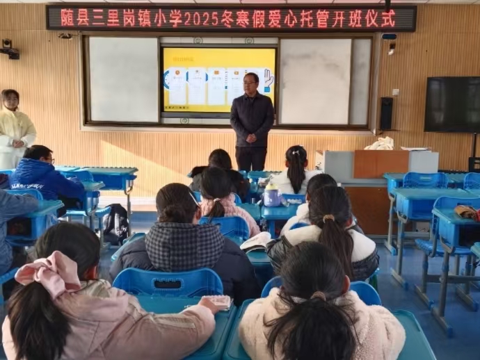 随州新闻网讯(通讯员周琼娇)2月2日,三里岗镇小学为期一周的寒假爱心托管班正式开班,校园里洋溢着轻松愉悦的氛围。本次托管班聚焦学生假期成长需求,融合学业辅导、素质拓展、安全教育与德育实践,为孩子们打造安全、充实、有趣的假期学习生活。