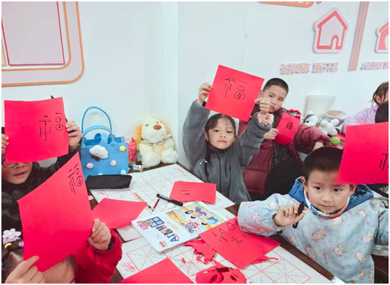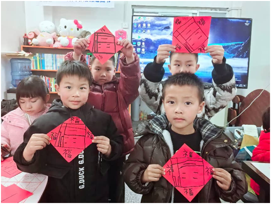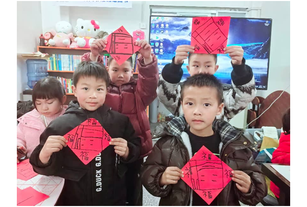 活动最后,孩子们将自己的剪纸、福字作品精心张贴在暖心小筑驿站的门窗、墙面各处,红红的窗花与福字相映成趣,让整个驿站瞬间充满了浓浓的新年氛围感,也让孩子们在亲身体验中感受了传统民俗的乐趣,在动手创作中收获了成就感与幸福感。此次活动不仅锻炼了孩子们的动手能力,更让中华优秀传统文化在孩子们心中落地生根,为孩子们的寒假生活增添了一抹别样的年味。