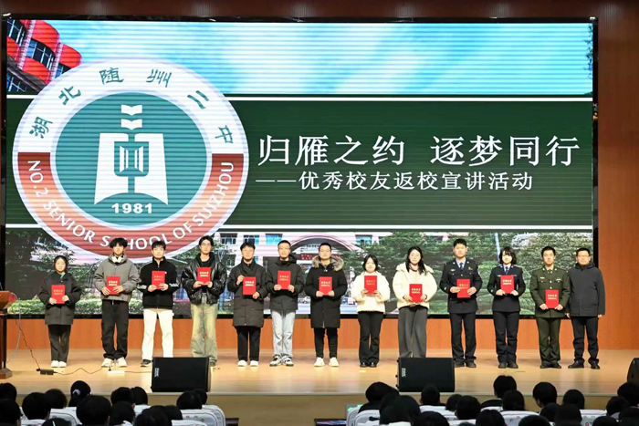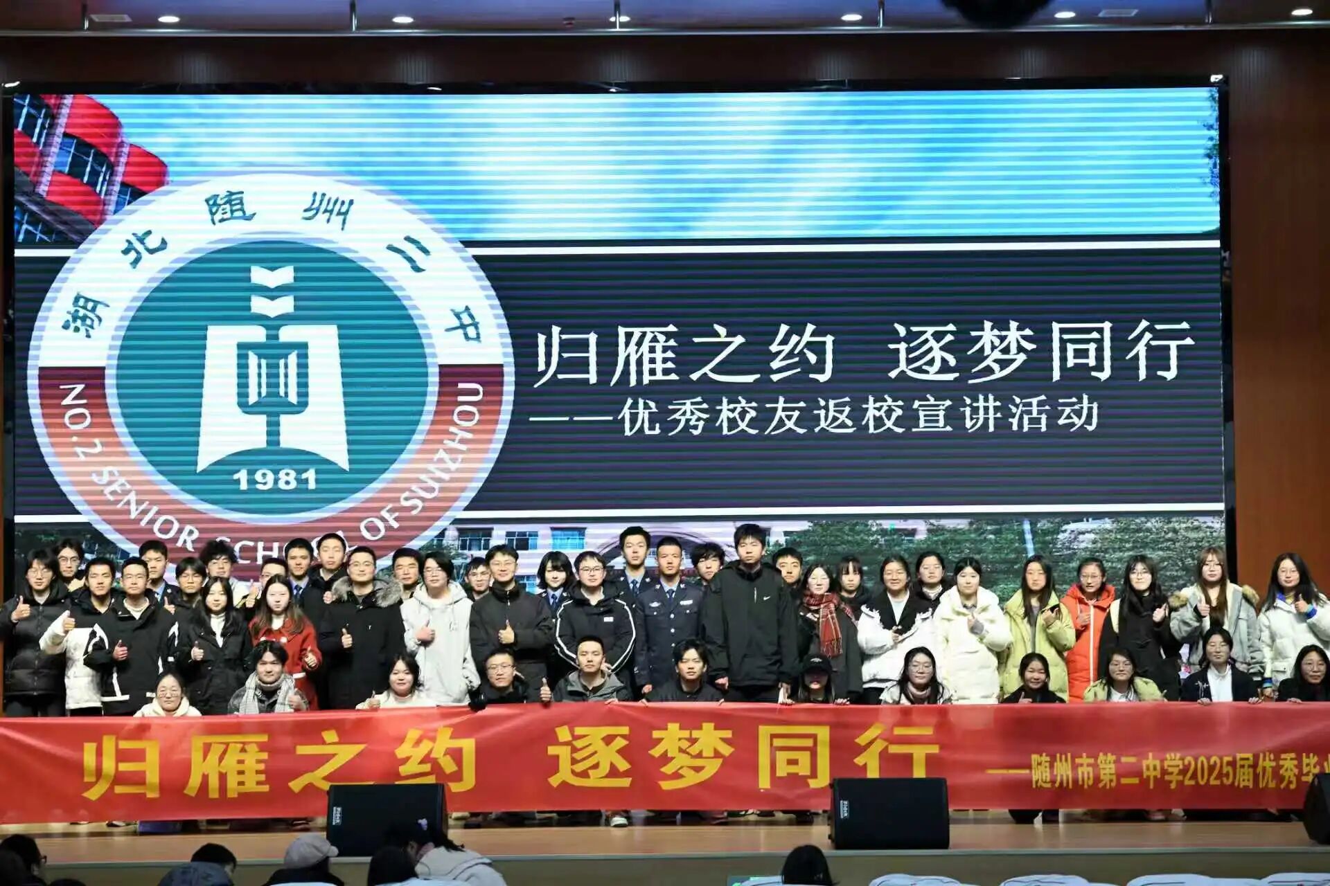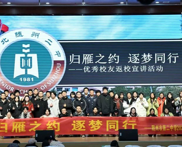 薪火传情守初心,筑梦前行向未来。本次优秀校友返校宣讲会,不仅搭建了校友与母校沟通的桥梁,传递了校友对母校的深厚情谊,更为在校学子提供了宝贵的学习经验与成长指引,树立了鲜明的榜样。相信全体随州二中学子将以优秀校友为标杆,汲取奋进力量,明确前行方向,在青春的赛道上奋力拼搏、逐梦远航,不负母校培养、不负时代重托,未来成为更加优秀的自己,为母校增光添彩。
