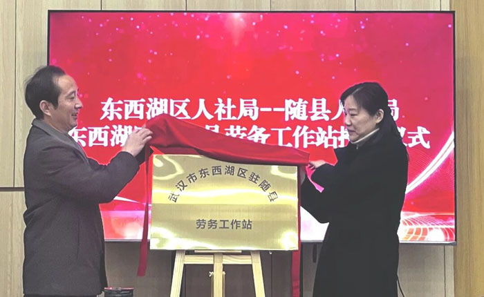 当天上午,东西湖区人社局与随县人社局就深化区域劳务协作暨“社银合作”开展座谈。座谈会上,东西湖区人社局为随县人社局授牌“东西湖区驻随县劳务工作站”,两地劳务合作从此走上常态化、规范化轨道,今后将共享岗位信息、互通劳动力资源,为随县群众外出就业搭建起更顺畅的通道。为让群众在家门口就能享受到就业、金融一站式服务随县人社局与随州农商行随县支行现场签订合作协议,双方联手把社保办理、就业服务、创业金融等业务延伸到基层。会上,随州农商行随县支行还为2家企业现场发放创业担保贷款凭证和授信通知书,用实实在在的金融支持,帮助创业者轻装上阵、安心发展。