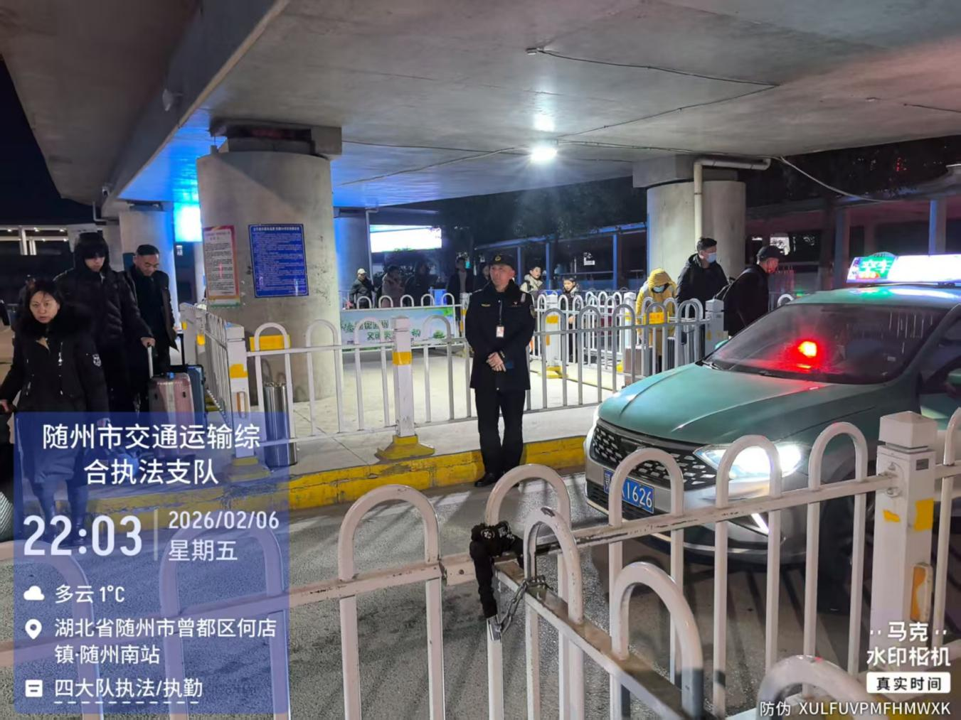 春节临近,万家团圆。随州市交通运输综合执法四大队执法人员却选择逆向而行、深夜坚守,以全天候值守、全时段管控、全方位服务,全力无缝对接高铁班次,用责任与担当筑牢春运安全防线,用辛劳与付出守护群众平安出行路。