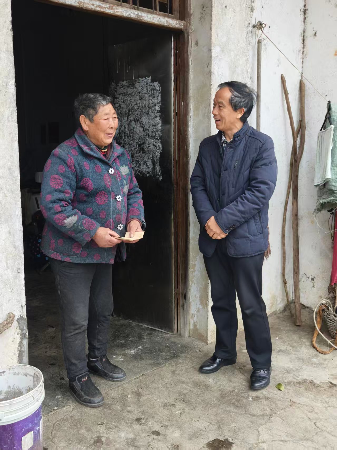 “马上过年了,年货备得怎么样?”“医保报销方不方便?”“孩子在外工作顺心吗?”在石桥村,工作组一行深入监测户、脱贫户家中,与他们围坐一起拉家常、问生计,详细了解家庭收入、健康状况、子女就业及各项帮扶政策落实情况。在监测户李大爷家中,工作组仔细查看了他的冬季取暖保障和住房安全情况,并送慰问金,叮嘱他保重身体、坚定信心,在党和政府的关怀下把日子越过越红火。