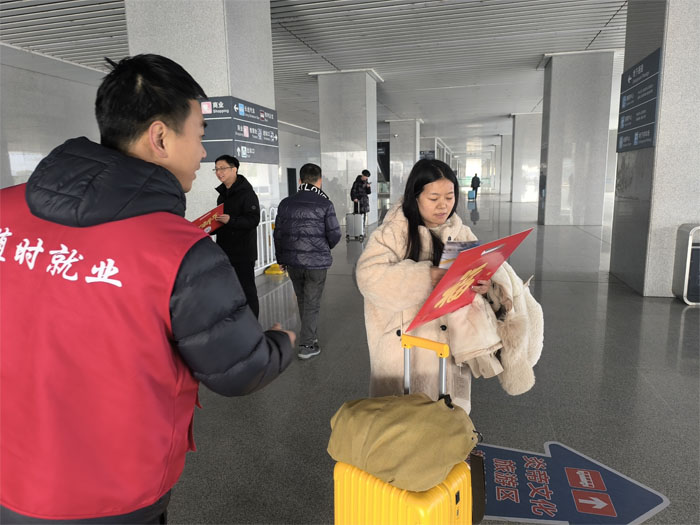 自2月7日起,市人社局紧扣优化营商环境、服务返乡群体、助力家乡发展的核心目标,在随州南站、随州火车站同步设立返乡就业创业服务驿站,工作人员面对面为返乡人员讲解重点企业招聘信息、创业担保贷款、技能培训补贴等一系列惠企惠民政策,同步推广“随时就业”智慧公共就业服务平台。返乡人员只需扫描二维码,即可完成就业创业意向登记,享受精准岗位匹配、政策主动推送等一站式服务。截至目前,活动已累计发放就业创业政策手册3000余份,为600余名返乡人员提供政策咨询与讲解服务。