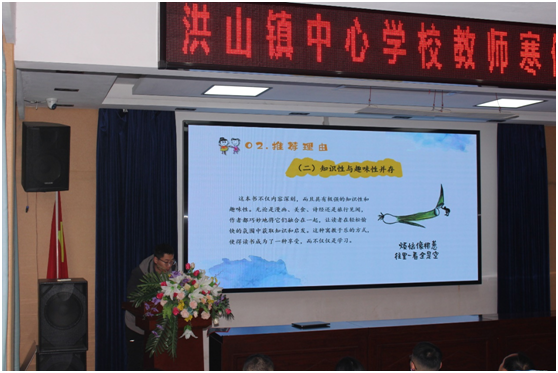 接着,副校长罗书梅结合初中语文教学与工作的实际经验及笃行理念,为大家分享了《优秀教师的成长逻辑》一书;随后,青年教师汪玉荣、杨晓芳、陈媛源、王龙勋等分别结合寒假阅读的教育专著、人文典籍及学科专业书籍,依次分享阅读心得与感悟。分享读书的老师们都立足自身教学实际,从教育理念更新、教学方法创新、师生关系构建、班级管理优化等多个角度,畅谈读书收获,交流实践思路,将书中的理论知识与日常教学紧密结合,在思想碰撞中拓宽教育视野,在交流探讨中凝聚育人共识,现场氛围浓厚、暖意融融。