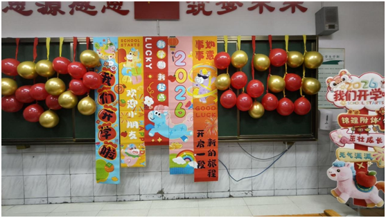 学校全面开展校园环境卫生大扫除,对校园公共区域、教室、功能室进行彻底清扫消杀,校园窗明几净、焕然一新,以整洁优美的环境迎接学子归来。同时,开展校园及周边安全隐患排查整治,紧盯重点区域与关键设施,筑牢校园安全防护网,为师生平安返校保驾护航。后勤保障精准发力,学校组织后勤员工专题培训,强化服务意识、提升服务水平;提前整理分发崭新教材,全面调试电教设备,确保教学物资到位、课堂运行顺畅。各班精心装扮教室,排练迎新节目,用温馨布置与暖心仪式感,让校园充满期待与温情。