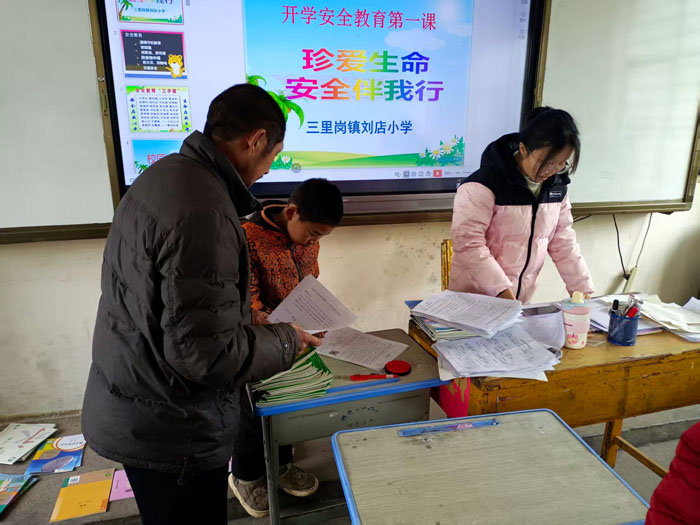 教室里,一位位老师认真核对材料,一张张崭新的课本整齐摆放;校园里,家长与孩子一同翻阅安全告知书,在温馨的氛围中完成新学期的“第一站”。这不仅是一次简单的报到,更是家校携手、共护成长的温暖起点。