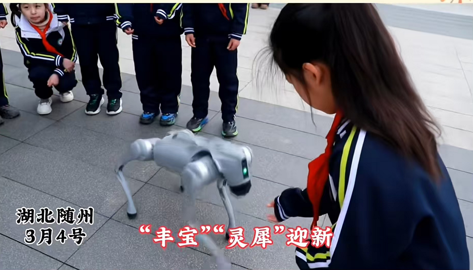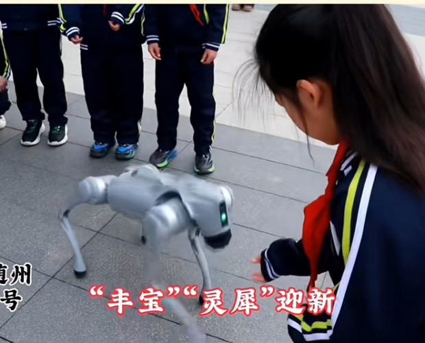 曾都区五丰学校的校门口则充满了科技感,师生们与智能机器人、机器狗一起迎接学生返校,用科技与欢笑为新学期注入满满的期待与活力。