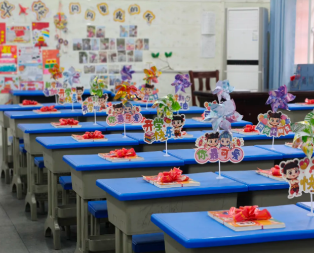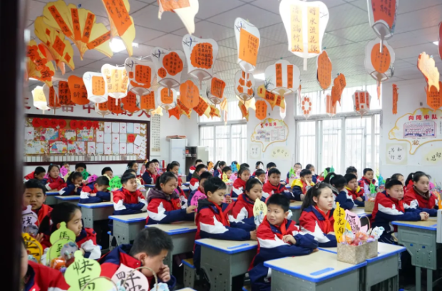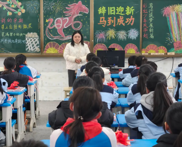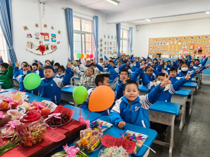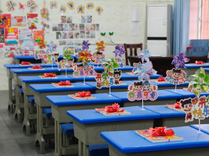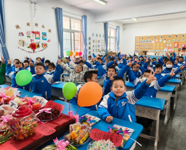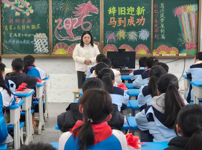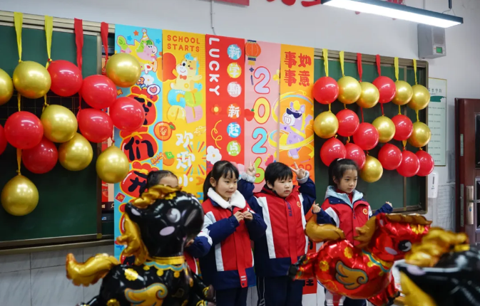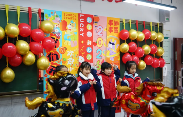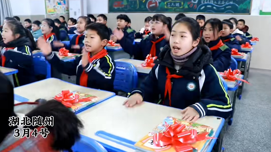 随州市胜利学校内,教室内外装扮一新,老师们精心布置了欢迎仪式,用红花与祝福语迎接孩子们重返校园,五彩缤纷的气球装点着教室,营造出温馨喜悦的氛围。