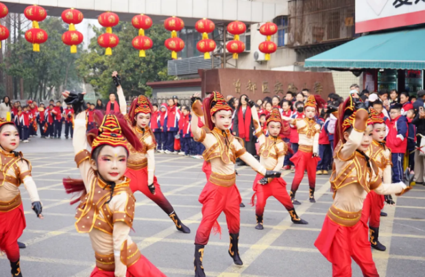 在曾都区东关小学,开学仪式别具一格。学生们带来的舞蹈《天地龙鳞》节奏铿锵,展现了传统文化的独特魅力。