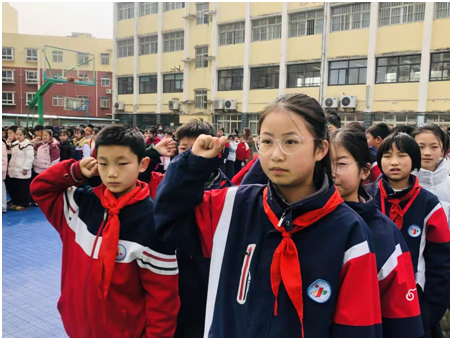 活动当天上午,全体师生齐聚校园操场,举行主题队会暨活动动员仪式,正式拉开本次学雷锋系列活动的序幕。仪式上,六(1)中队代表登台演讲,结合抗疫志愿者事迹、身边好人好事等新时代雷锋故事,生动诠释雷锋精神的时代内涵,真挚的话语让在场师生深受触动。副校长唐政为活动作寄语,深入解读雷锋精神的时代意义,并向全体师生提出“五个一”行动要求:帮一次同学,做一件家务,护一片环境,献一片爱心,守一份诚信,鼓励大家从身边小事做起,将雷锋精神融入日常学习与生活,以点滴善举凝聚文明力量,助力优化营商环境。随后,全体师生举起右拳,齐诵学雷锋倡议书,铿锵有力的誓言回荡在校园,凝聚起人人争当“小雷锋”的浓厚氛围。