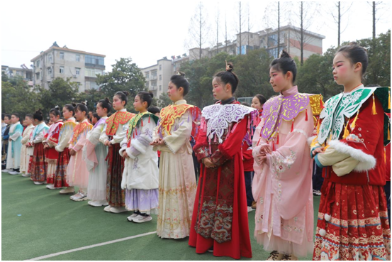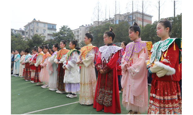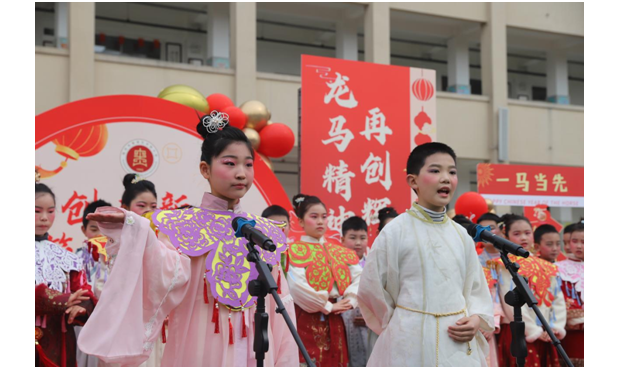 传统文化与非遗技艺交相辉映,成为典礼一大亮点。学校剪纸社团师生精心创作的精美云肩,由12位“花神”优雅身着,惊艳亮相。伴随着古韵悠扬,一场别开生面的十二花神飞花令精彩上演,同学们以诗会友、以词传情,在诗词吟诵中感受四季芳华,在非遗剪纸的匠心巧思中传承中华文脉,让传统文化在校园焕发生机。