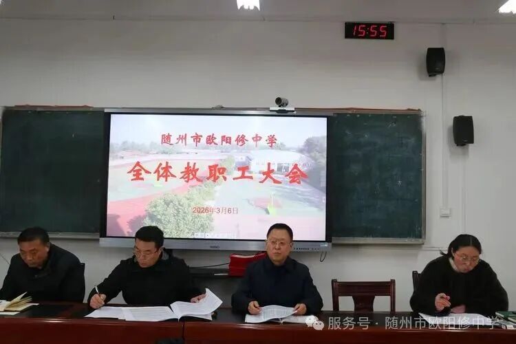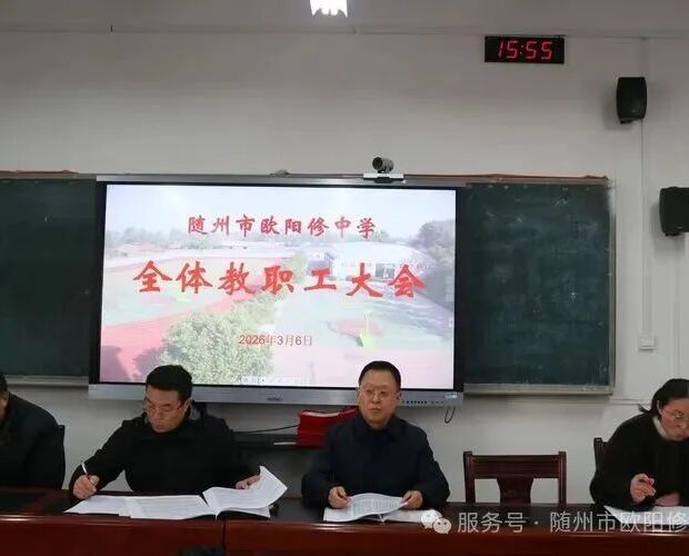 随州新闻网讯 (通讯员余军威)春回大地,万象更新。为明确新学期工作方向,凝聚全体教职工奋进力量,确保各项工作高效、有序开展,3月6日,欧阳修中学召开了2026年上学期全体教职工大会。