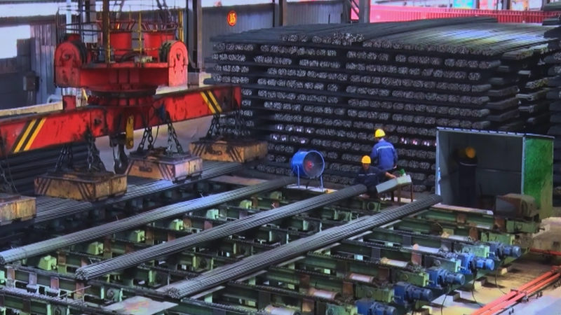 车间内,机器轰鸣、火花四溅。多条生产线满负荷运转,火红的钢坯在轧机上穿梭,一批批高强度带肋螺纹钢、轴承钢等优特钢材正加紧生产。