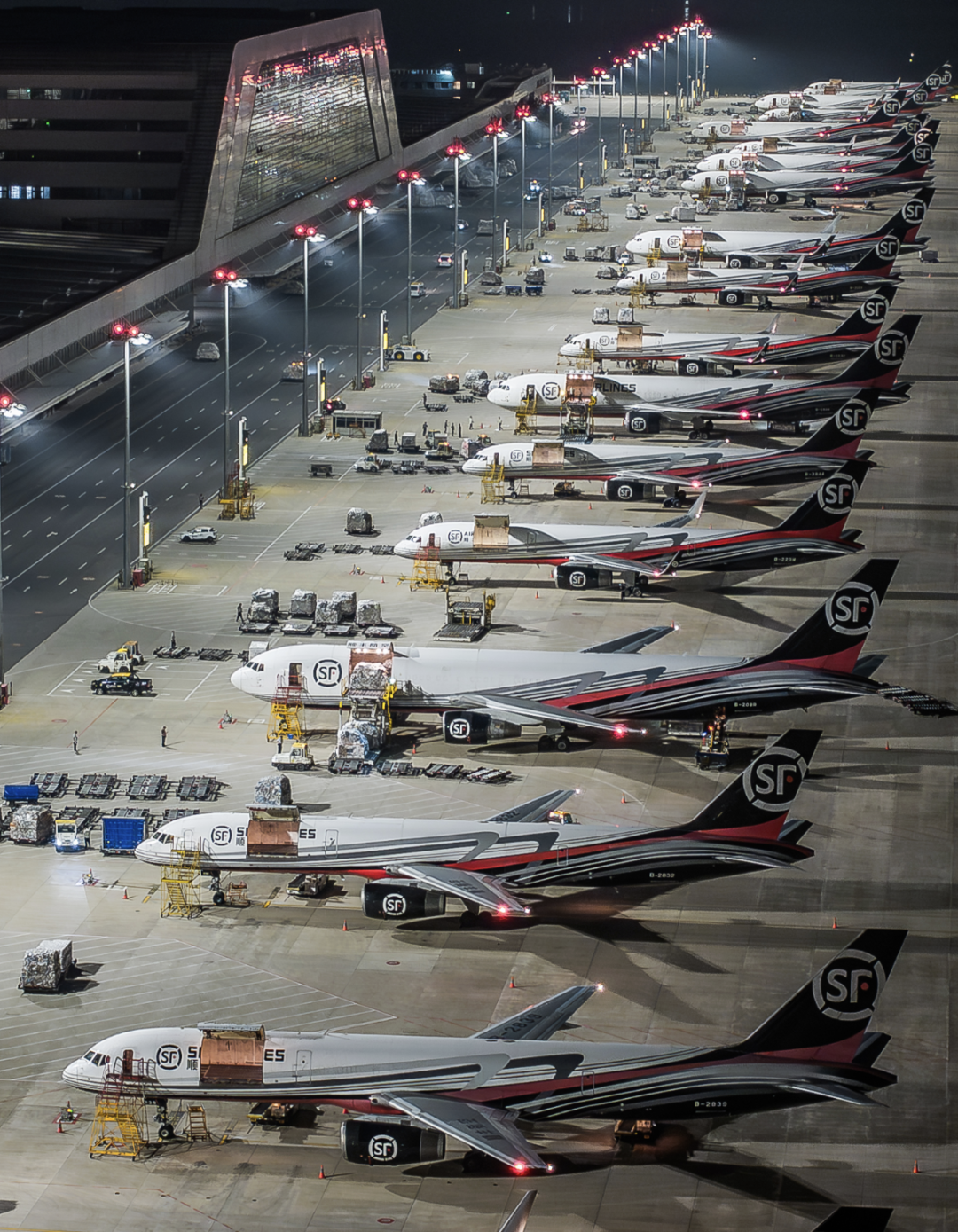 凌晨的鄂州花湖国际机场停机坪一片繁忙(薛婷|摄)