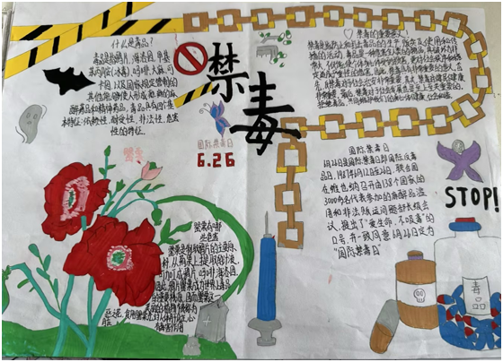 与此同时,全校开展了禁毒主题手抄报创作活动。同学们积极参与、认真构思,用画笔和文字描绘禁毒知识、宣传防毒理念,一幅幅主题鲜明、内容丰富、色彩鲜艳的手抄报,充分展现了同学们对毒品危害的认知和“珍爱生命、远离毒品”的坚定决心。