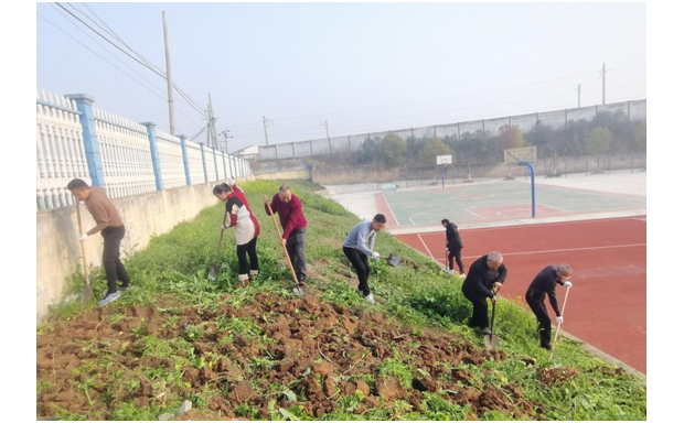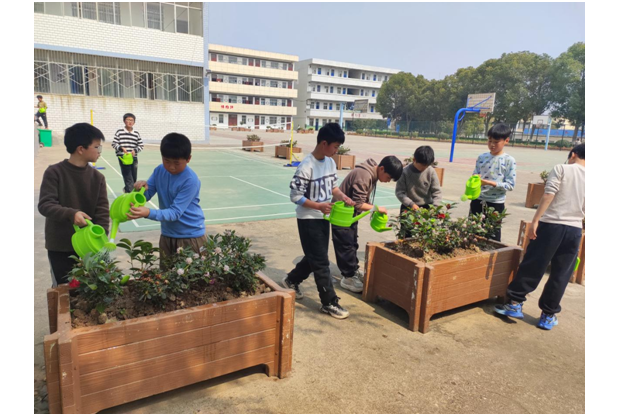活动现场暖意融融、干劲十足。校长率先垂范,带领无课教师投身翻地劳作,挥锹松土、平整土地,为校园绿化与劳动实践打下坚实基础。五年级学生依托劳动实践课,在老师们的悉心指导下有序加入翻地行列,分工协作、配合默契,稚嫩的身影与辛勤的汗水相映成趣。午间休息时段,各班同学迅速行动,为清洁区花卉松土、浇水,细心呵护每一株绿植,用点滴行动美化校园环境。