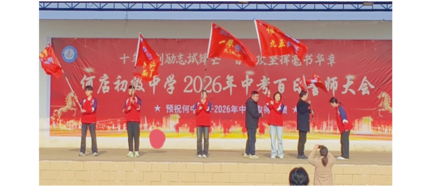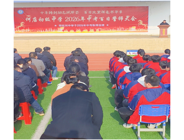 百日磨剑,今朝试锋;同心筑梦,未来可期。此次百日誓师大会的成功举行,不仅为九年级师生注入了强大的精神动力,更明确了冲刺方向、凝聚了奋斗力量。相信在接下来的一百天里,何店初级中学全体师生必将以昂扬的斗志、务实的行动,全力以赴、奋勇拼搏,在2026年中考中书写属于自己的辉煌篇章!