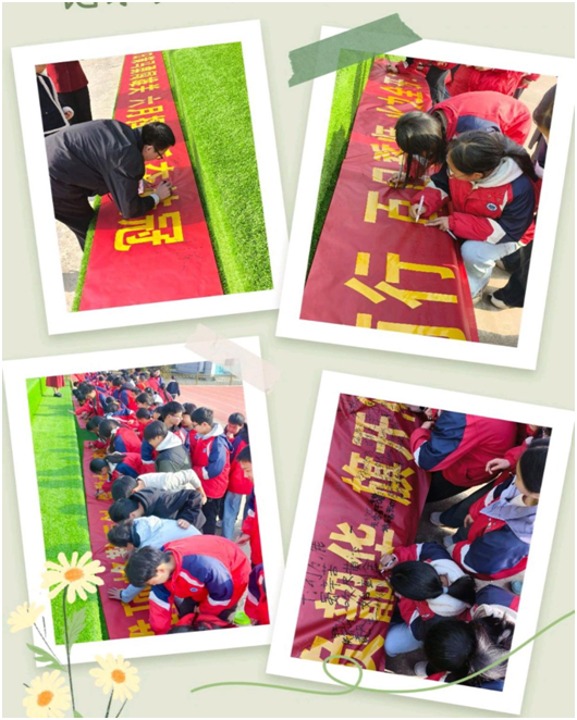 大会进入签名仪式环节,现场氛围温馨而庄重。按照“先老师、后学生”的顺序,全体师生依次走向签名墙,郑重写下自己的姓名。一笔一划间,是对梦想的坚定承诺,是对百日冲刺的庄严表态,更是对未来的美好期许。签名墙被渐渐填满,也见证着师生们共同奔赴中考的坚定决心。