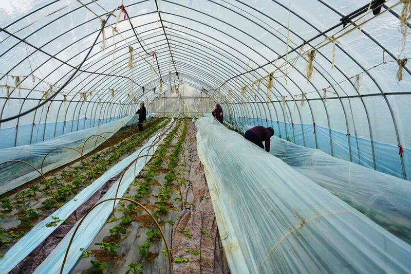 “这批黄瓜预计3月底就能采摘上市,一年能种两茬。”大棚技术管理员向凯锋介绍,“科学管理让大棚种植提质增效。”
